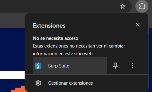 Primero, entramos en las extensiones del navegador de Burp Suite: