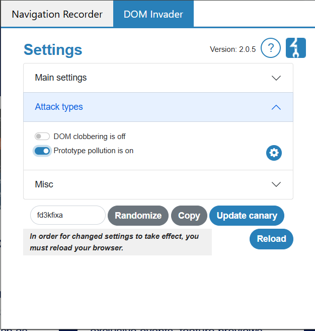 Y habilitamos el tipo de ataque de ‘Prototype pollution’: