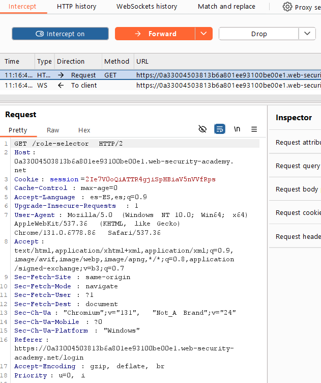 Esta petición no se puede modificar con el ‘Logger’ y el ‘Repeater’, por lo que encenderemos el ‘Proxy’ para interceptarlas según vayan sucediendo.