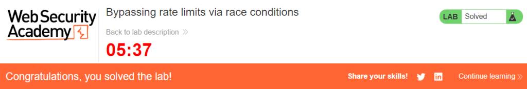 This lab’s login mechanism uses rate limiting to defend against brute-force attacks. However, this can be bypassed due to a race condition.