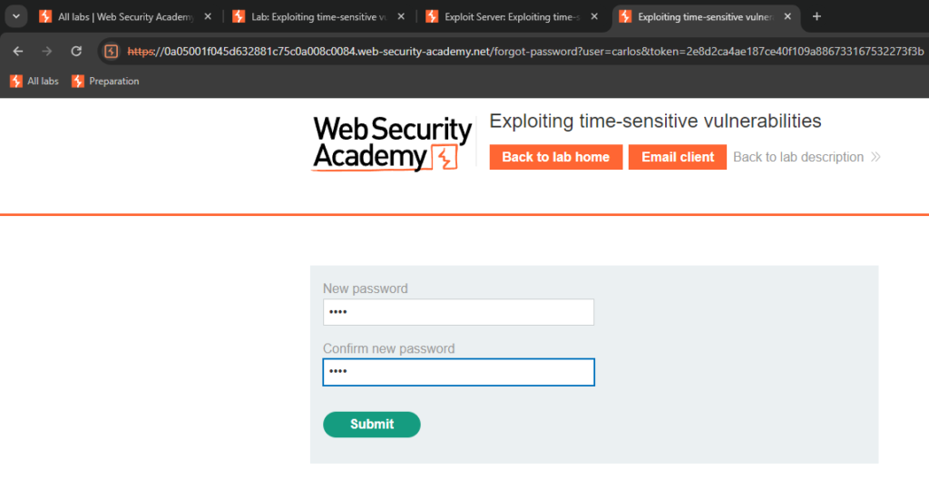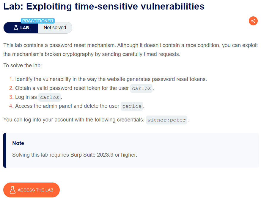 This lab contains a password reset mechanism. Although it doesn’t contain a race condition, you can exploit the mechanism’s broken cryptography by sending carefully timed requests.