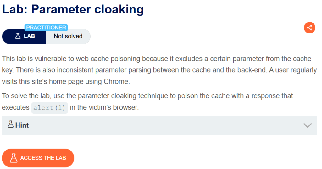 To solve the lab, use the parameter cloaking technique to poison the cache with a response that executes alert(1)