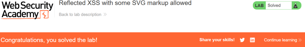Este laboratorio se resuelve de la misma forma que el laboratorio anterior (Reflected XSS into HTML context with most tags and attributes blocked), por lo que sólo se mostrará la solución.
