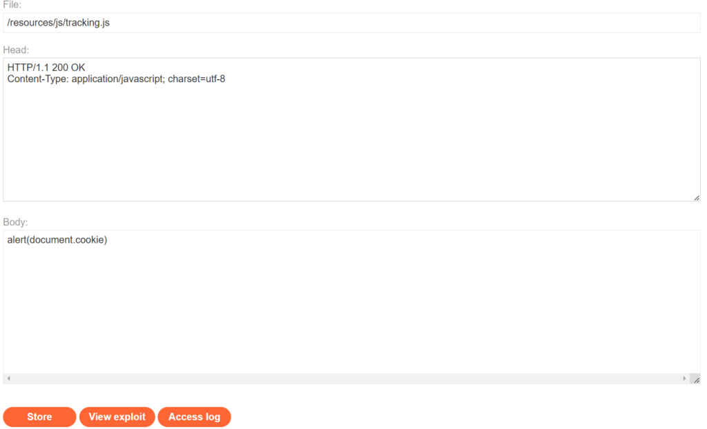 Ahora nos vamos al laboratorio, en ‘Go to exploit server’ y usamos la siguiente configuración:
