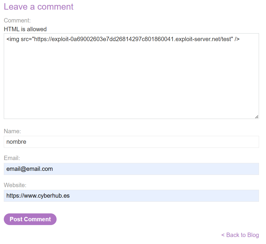 En los comentarios de los posts, se nos muestra que se permite HTML, crearemos un elemento que realice una petición a nuestro servidor: